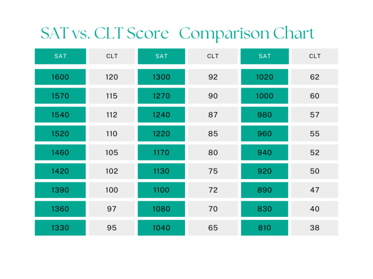 For every score on the CLT or SAT, there’s a correlating score on the other test.